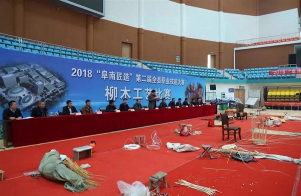 4月14日上午,由阜南县政府主办,黄岗镇政府和轻工柳木协会承办,县商务局、曹集镇政府、中岗镇政府、郜台乡政府联合协办的2018”阜南匠造”第二届职业技能大赛柳木工艺比赛在县体育馆举行。