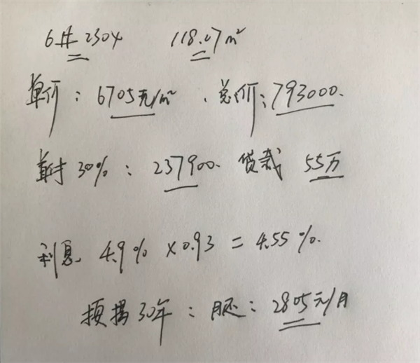 首付30%:237900元,贷款:55万,月供:2805元(30年);