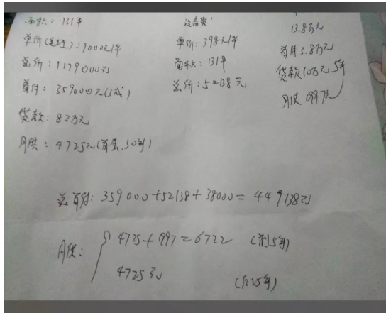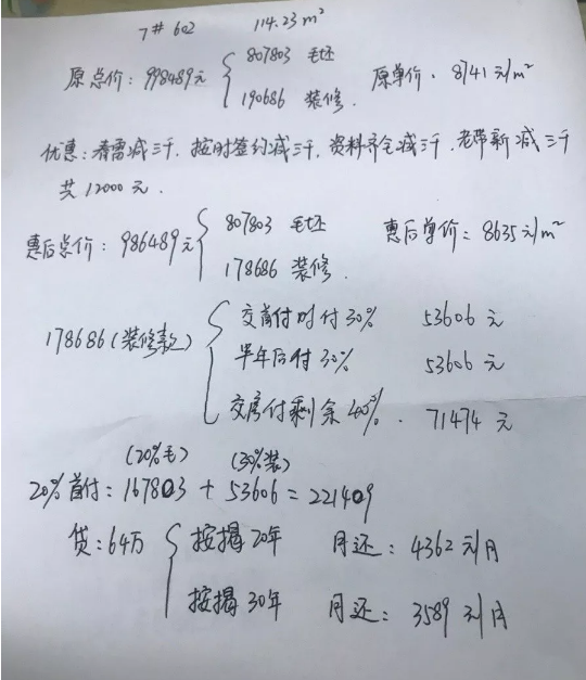 首付20%:221409元,贷款64万,月供4362元(20年),月供3589元(30年);