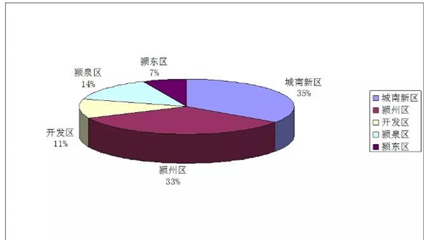 一、套数:2018年1—3月阜阳公寓租赁成交34套(其中,城南新区9套,占比27%;颍州区10套,占比31%;颍东区4套,占比12%;开发区5套,占比15%;颍泉区5套,占比15%。)