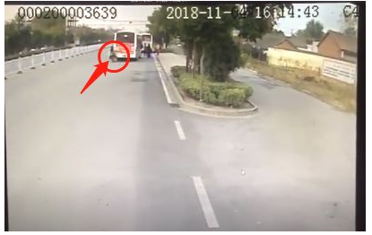 视频中可以看到小女孩行驶在机动车道,在电动车驶近公交车时,小女孩做出了转弯避让的反应。但是已经来不及了。俩儿童当场被撞倒在地!