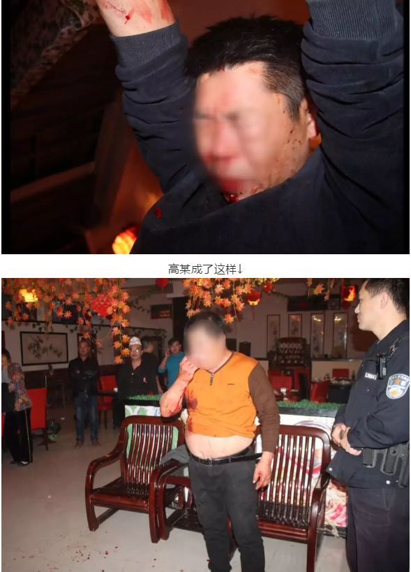 旁边的亲友当然不能让两人就这么打下去啊,费好大劲,终于把两人拉开,但均伤得不轻。