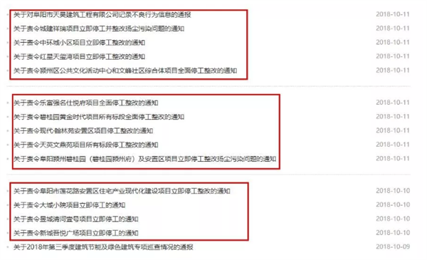 两天内阜阳9个楼盘被停工整改!原因竟都是因为这个……来源 阜阳城市周报连日来,阜阳空气质量虽为良好细心的网友会发现“阜阳蓝”这段时间都没有出现了冬季容易出现雾霾天气阜阳相关部门积极开展建筑施工扬尘污染